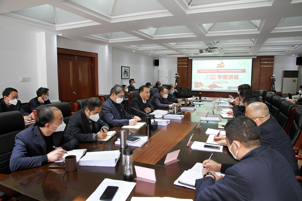 窗外寒风阵阵,室内暖意融融。2023年1月6日,公司领导班子成员、各部室负责人、各分公司主要负责人齐聚公司三楼会议室,聆听公司党委书记、董事长董富强作学习党的二十大精神专题讲座。