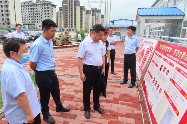 张庆虎等到达项目部后,沿着场内道路详细查看了党建示范点创建宣传展牌、党员责任区、“教科书”式的样板间,询问了施工进度等,对项目部的工作给予肯定。领导们在项目部会议室仔细查看了党支部“一册三卷”等资料,听取了党支部宣传委员、项目经理李明洋关于项目班子建设、党史教育、组织建设、亮牌受监督、深度融合、文化建设等六个“强化”的汇报。
